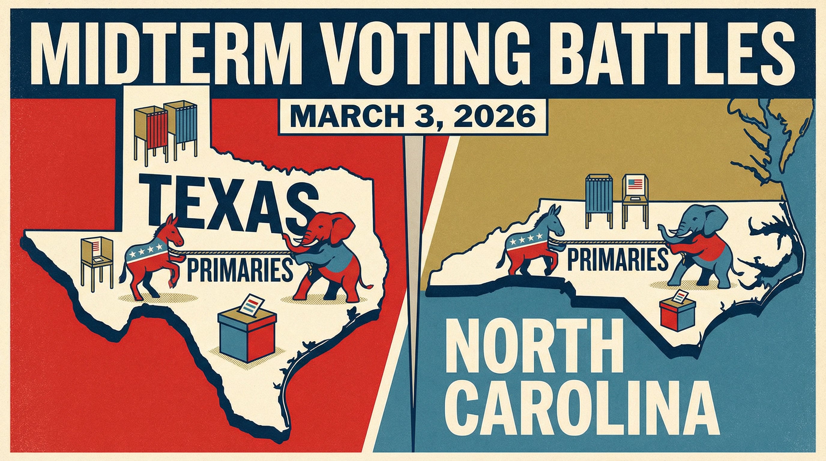 March 3, 2026, will provide the first results of the 2026 midterm election cycle. Several key questions will be answered in Texas and North Carolina.